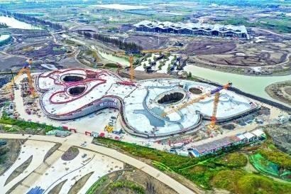 目前,“六館”均已完成封頂,鋼結(jié)構(gòu)焊接、屋面檁條搭建、內(nèi)墻砌筑等施工也已基本接近完成。被稱為“大蝴蝶”的世紀館開始著色,西側(cè)“翅膀”將布置珍奇花卉植物,東側(cè)“翅膀”將布置多媒體藝術(shù)裝置,用虛實結(jié)合的方式演繹花博會主題。