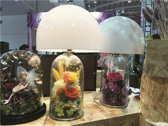 近兩年,國內永生花市場增速明顯,越來越多人加入永生花生產加工行列,一些企業(yè)在提高永生花觀賞價值的同時,也在不斷拓展其在不同領域的應用。如賞、用結合的永生花臺燈,玻璃容器中的永生花與臺燈搭配,代替燈柱的同時,燈光的照射使永生花光彩照人。